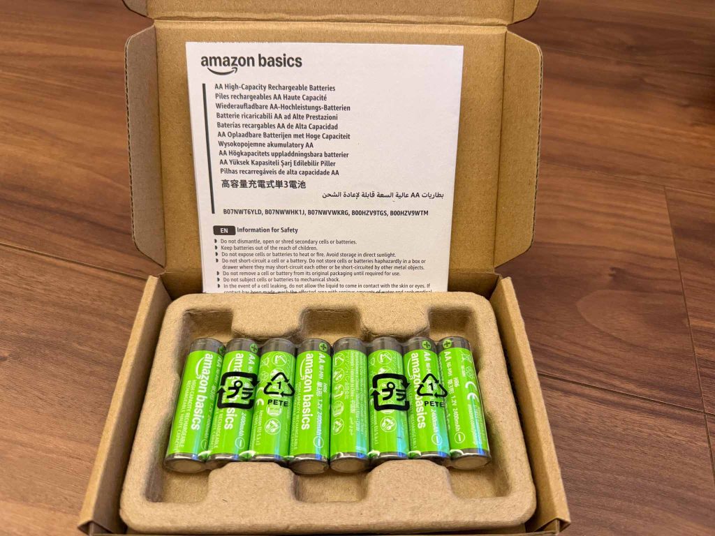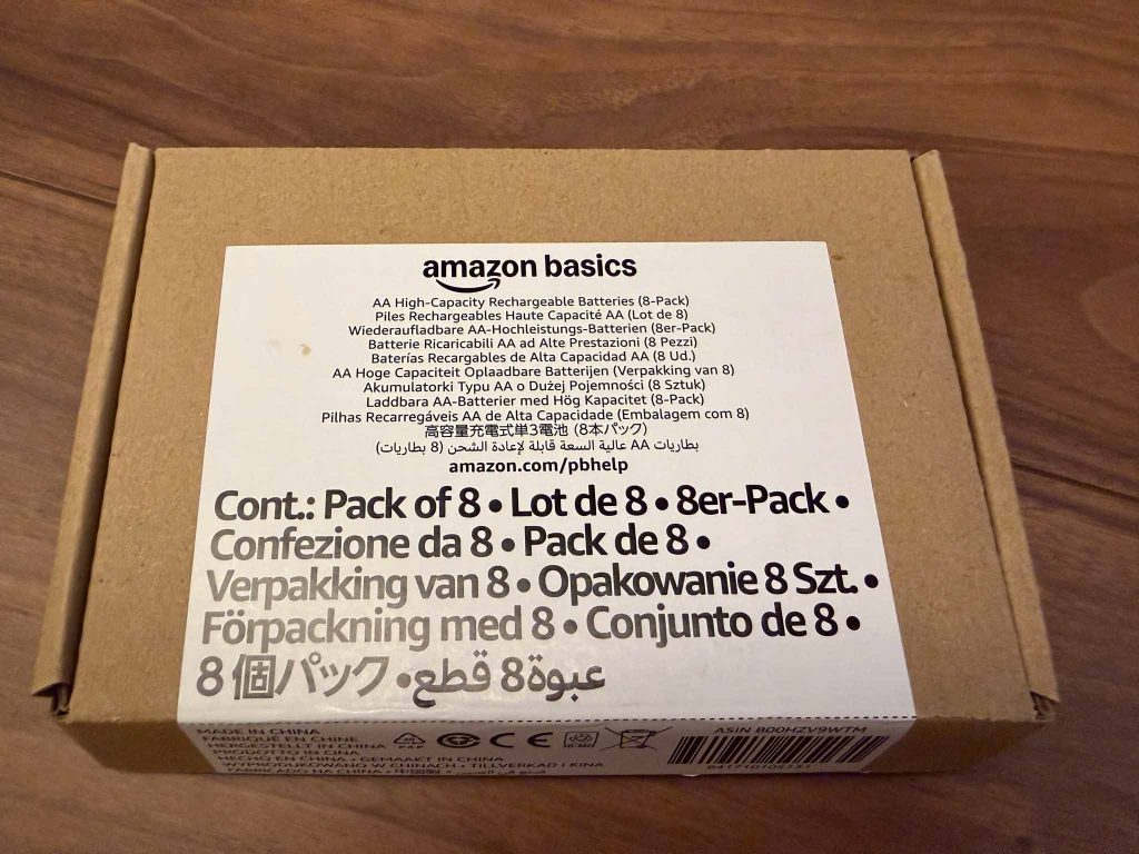 今回購入したのは Amazon Basics 充電式単三形ニッケル水素電池(8個入り・2400mAh)。